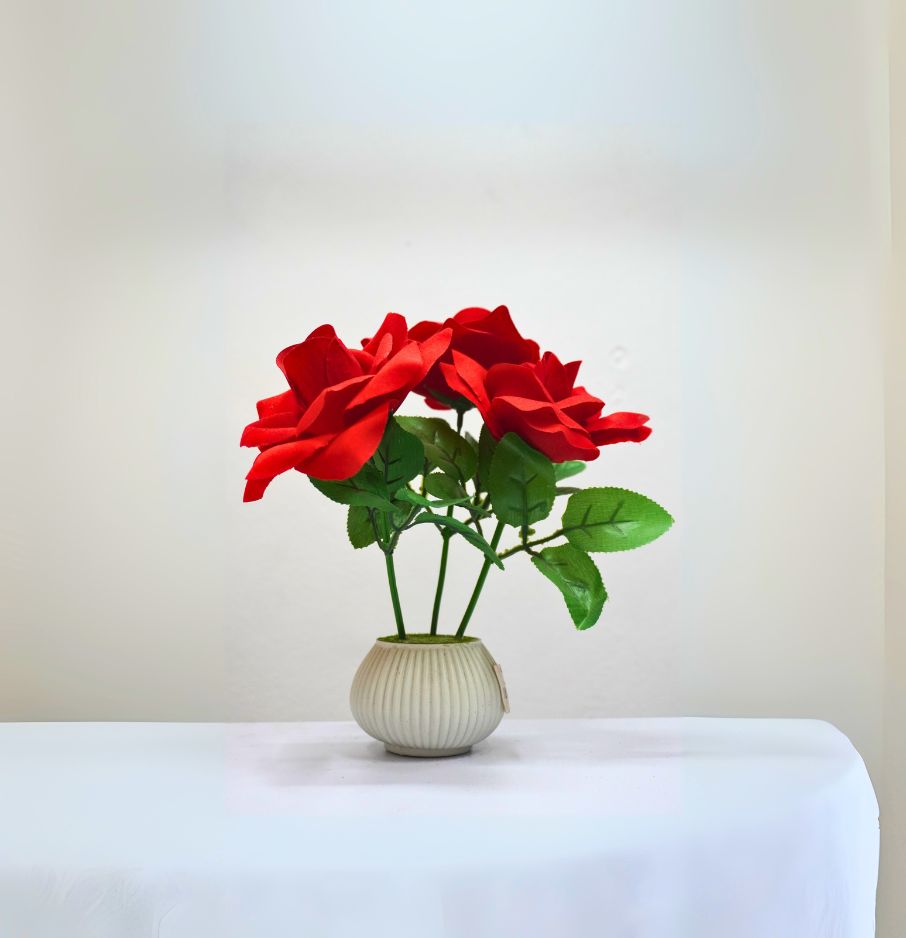 9 in ৪ ফুলের লাল গোলাপ – কালো টব সহ ঘরের সাজসজ্জা