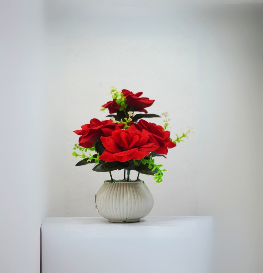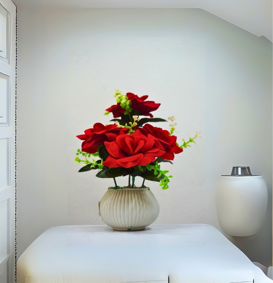 9 in ৪ ফুলের লাল গোলাপ – কালো টব সহ ঘরের সাজসজ্জা