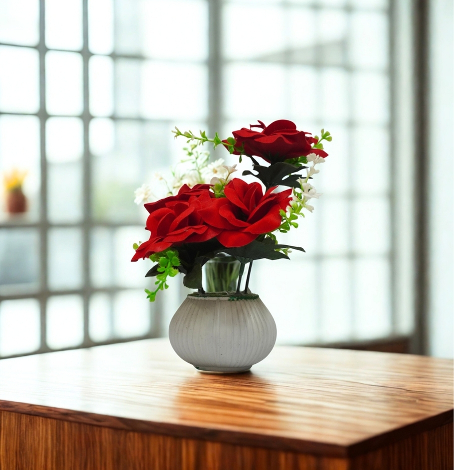 Love Shape কৃত্রিম রেড ও ইয়েলো রোজ টব – ঘরের সাজসজ্জার জন্য সুন্দর ফুলদানি