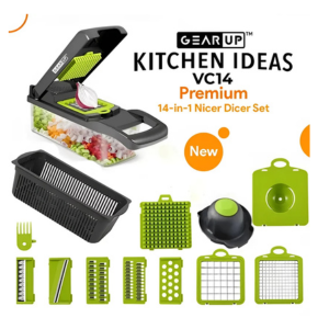 14-in-1 Functionality: The slicer comes with 14 different attachments, enabling you to slice, dice, chop, julienne, grate, and even spiralize fruits and vegetables effortlessly.