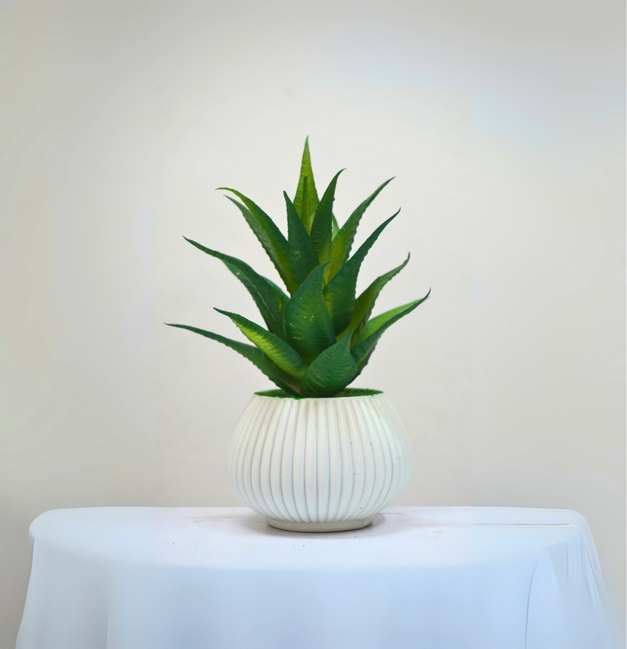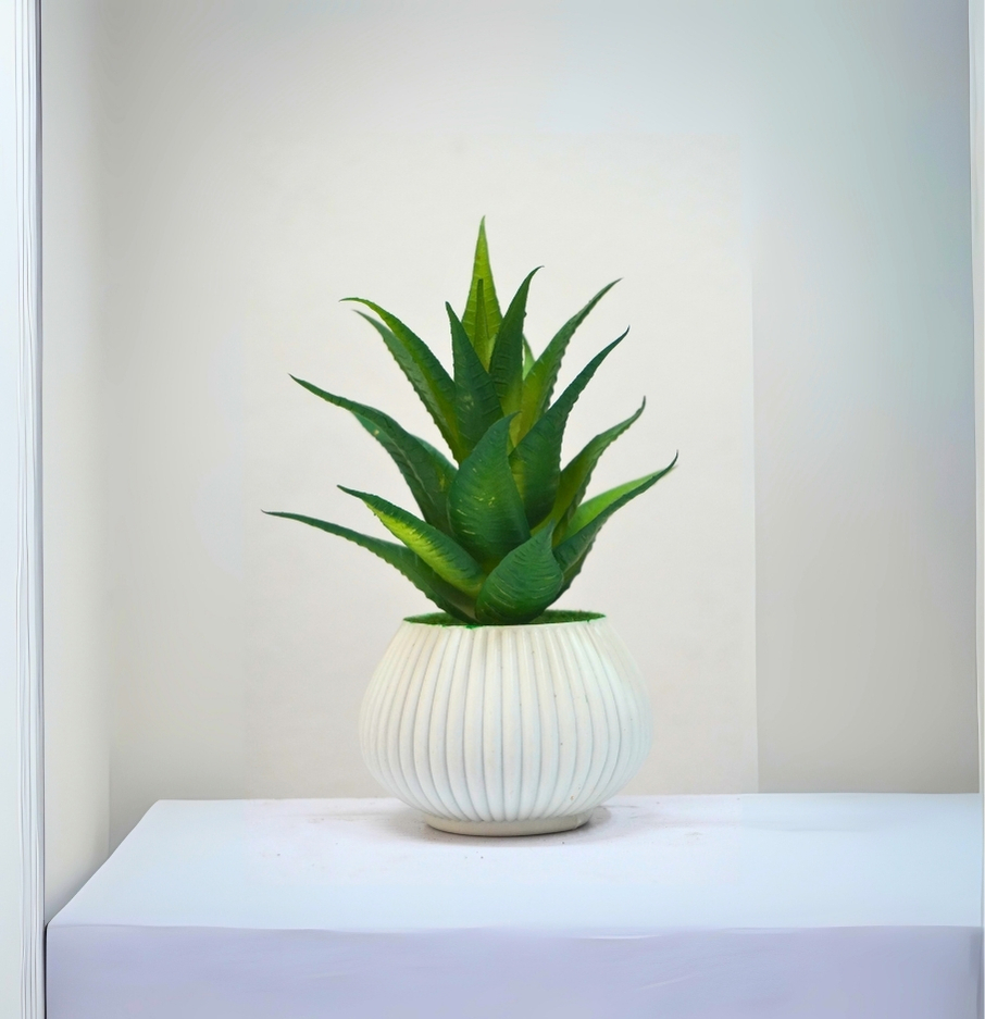 Green Color Aloe Vera – 6 ইঞ্চি সাদা ও সবুজ টবের ডেকর প্ল্যান্ট